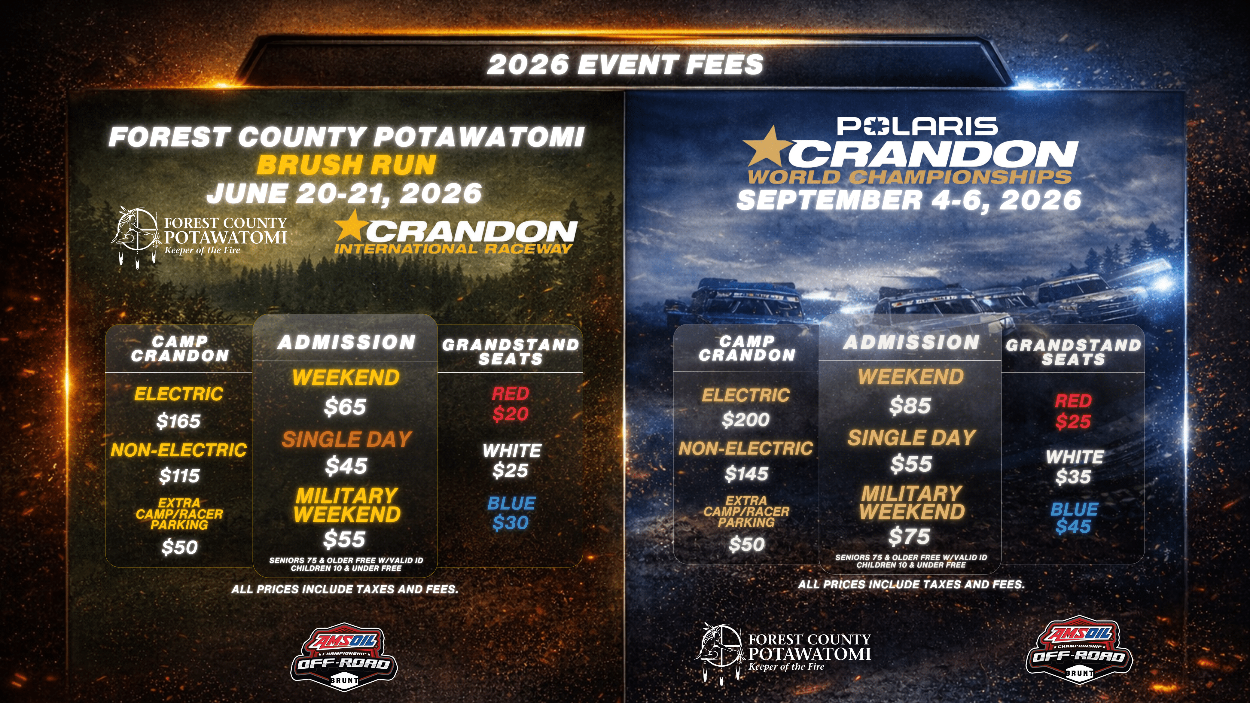 Purchasing admission/camping/seating for the 33rd Forest County Potawatomi Brush Run provides early access to reservations for the 57th Polaris Crandon World Championships.